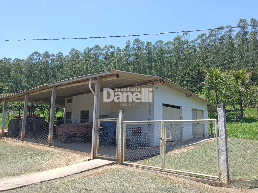 A fazenda também dispõe de infraestrutura completa para o manejo e funcionamento das atividades rurais, com oficinas e galpões bem estruturados: a primeira oficina, de 242 m², abriga sala de implementos agrícolas, garagem para tratores e galinheiro; a segunda, de 106 m², conta com paiol de grãos, depósito de madeiras e garagem para ferragens. Há ainda áreas cobertas destinadas a atividades específicas, como local para picadeira de forragens e trituração de capim (36 m²), tronco para vacinação do gado (30 m²), mangueira e área de separação de bezerros (30 m²), além de espaço com balança para pesagem do gado (6 m²).