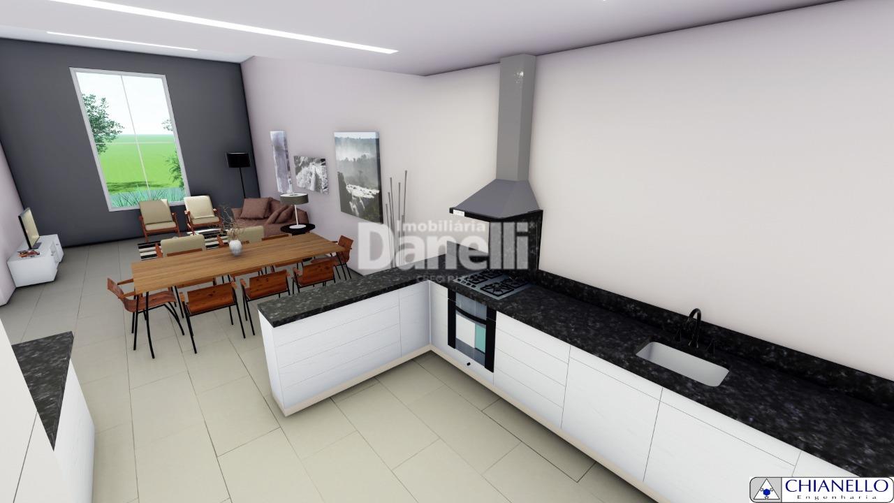 Sala 2 ambientes, cozinha integrada, área gourmet, lavabo, 1 suíte com closet, 2 quartos com banheiro conjugado, área de serviço e garagem coberta para 2 carros.